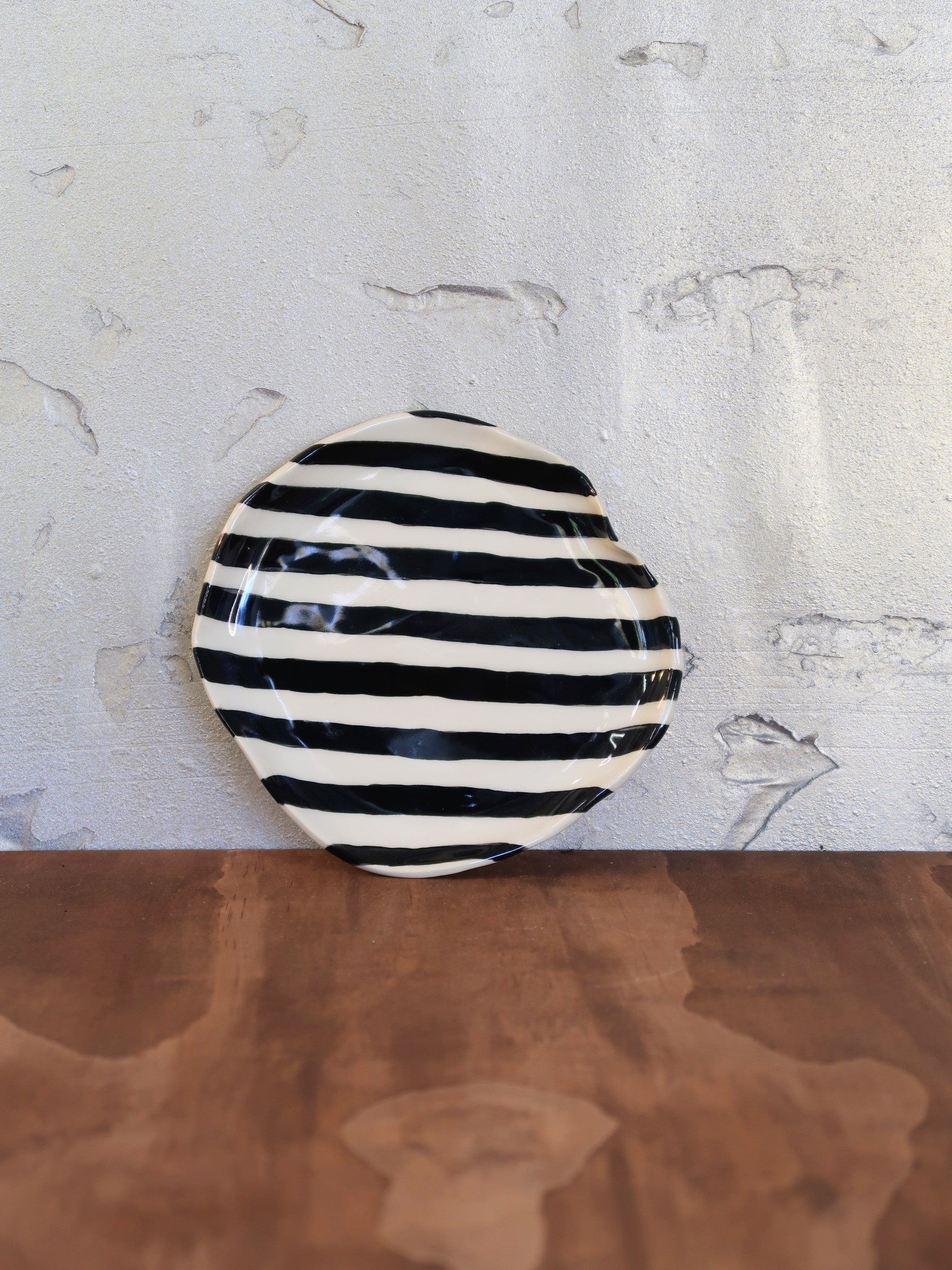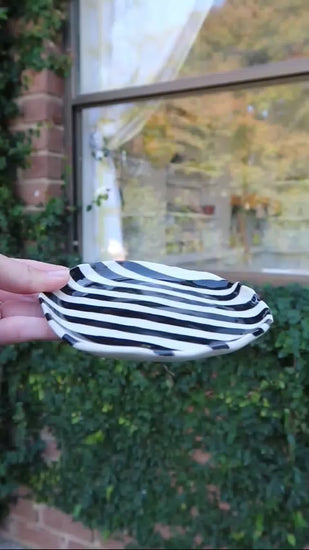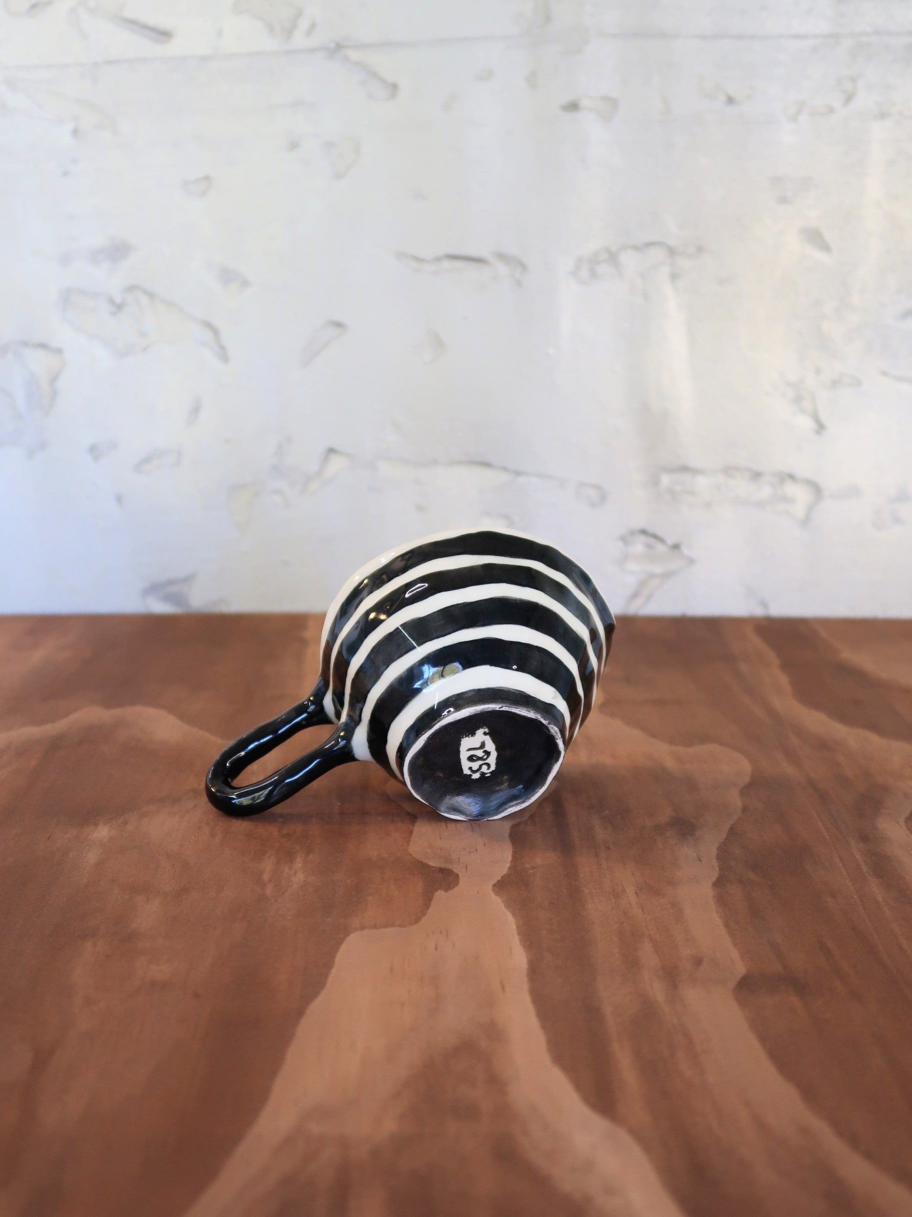 This hand-painted and hand-pinched monochrome set is for those who love contrast and bold shapes. With wonky stripes and graphic touches, it’s full of attitude and movement. The saucer echoes the cup’s rhythm, making it a stylish and modern pair.