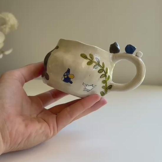 Each mug is carefully hand-shaped and hand-painted, making every piece truly one-of-a-kind. Its generous size is ideal for coffee, tea, hot chocolate, or any cozy drink that brightens your day.