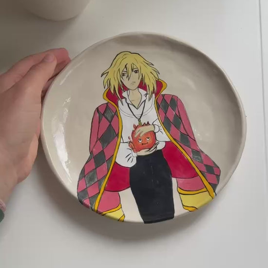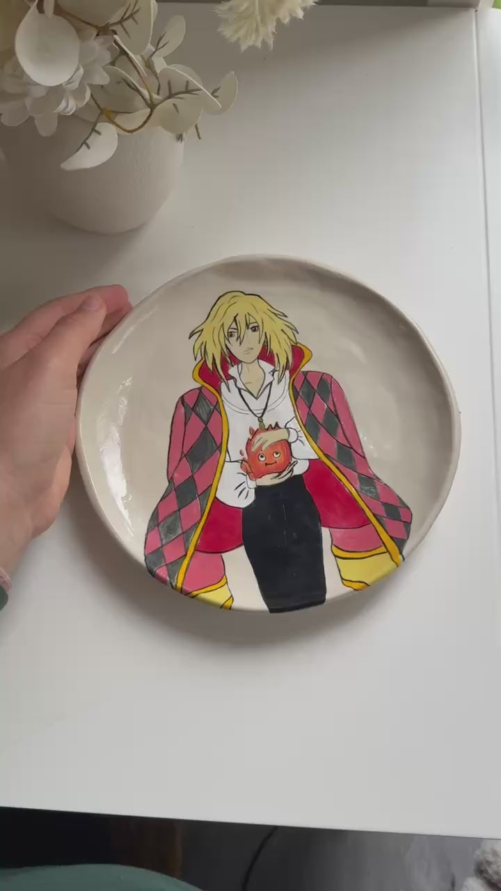 Add a touch of magic to your home with this large handmade ceramic plate inspired by Howl’s Moving Castle, featuring Howl holding Calcifer 🔥✨