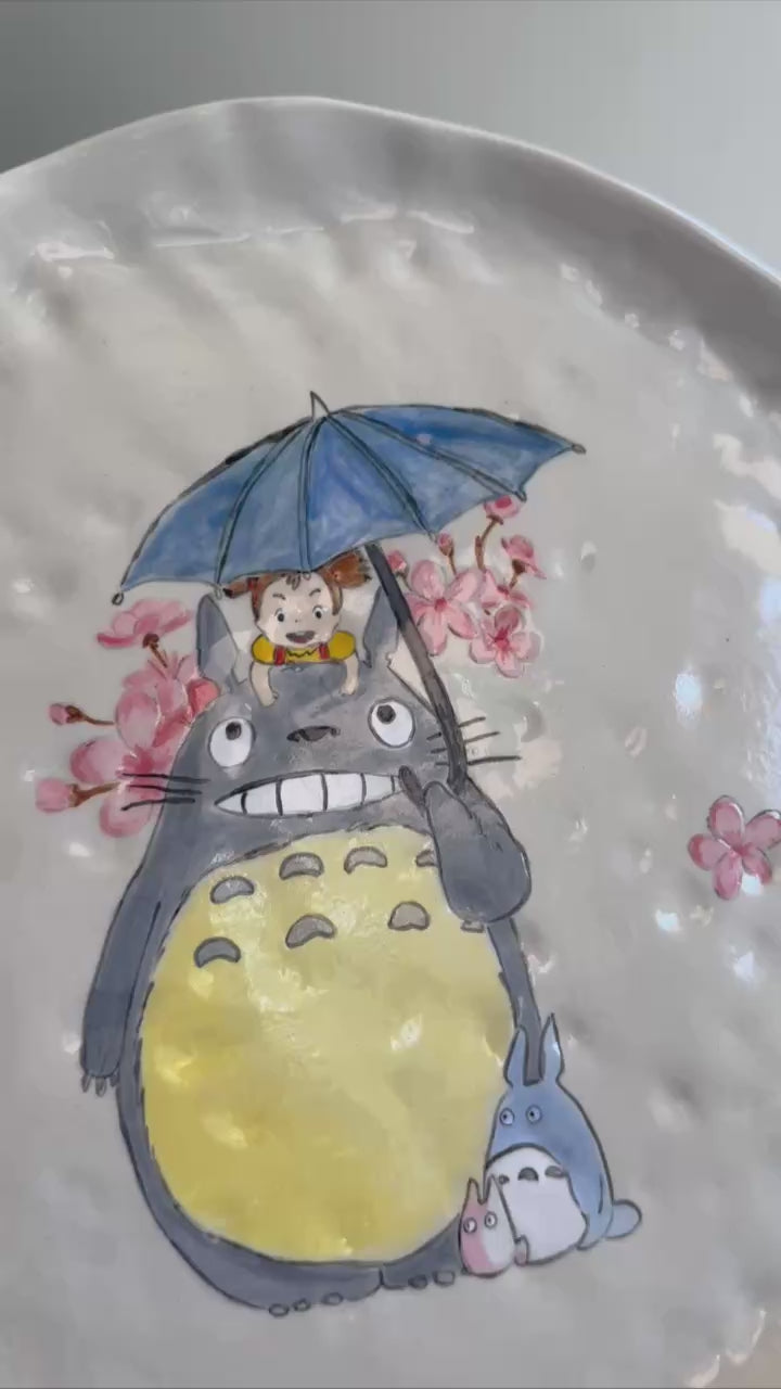 Large Totoro Ceramic Plate – 30cm Hand-Painted Stoneware Dish with Totoro & Mei