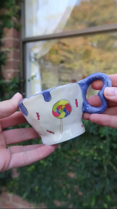 Tiny, twirly, and full of fun! This hand-painted and hand-pinched mini cup is bursting with candy colors and whimsical shapes. At just 120 ml, it’s perfect for a little espresso, a treat, or simply to admire.