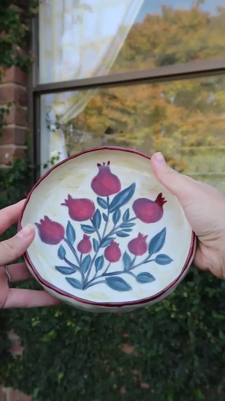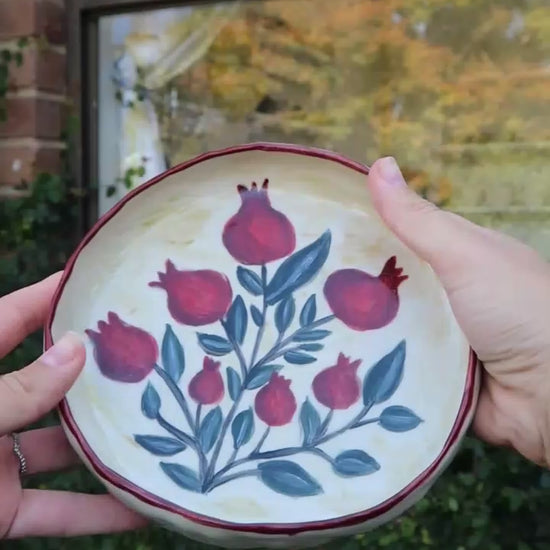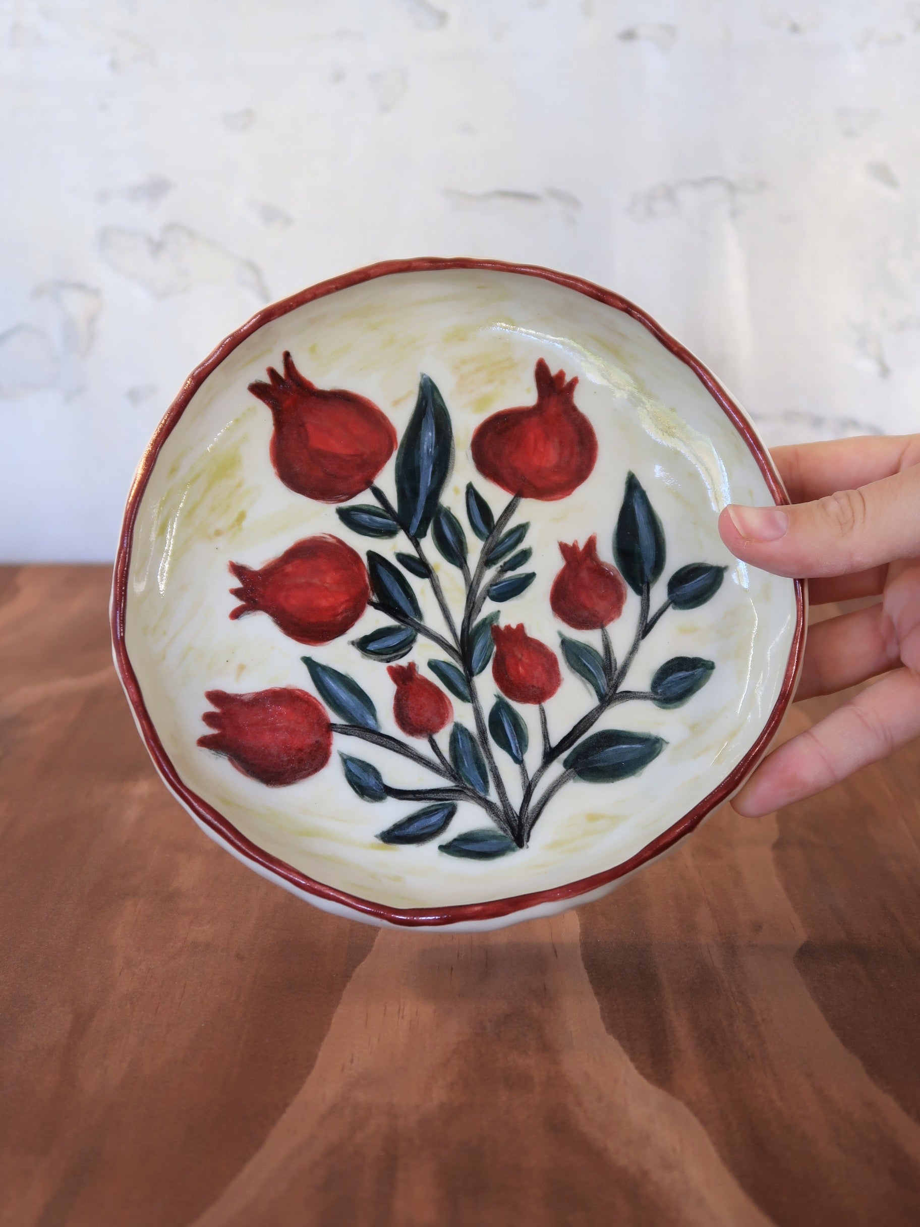 Pomegranate Shallow Bowl – Hand-Painted, Hand-Pinched