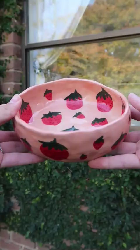 Strawberry bowl — Hand-Painted, Hand-Pinched