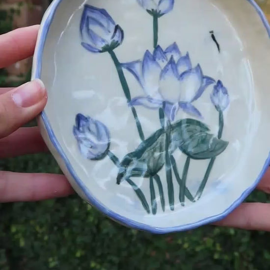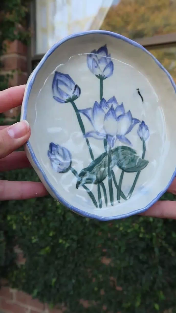 Delicate and calming, this lily bowl feels like a quiet morning by a pond. The hand-painted flowers gently bloom across the surface, with soft blues and purples inviting you to slow down. It’s beautiful as a serving dish or simply to admire. A little poetic moment for your home.