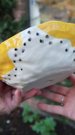 Bright and cheerful, this hand-built piece features a radiant yellow pattern and a whimsical black cat with a message that’s impossible not to smile at: "You are sunshine." It's a little burst of joy in bowl form.